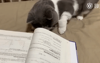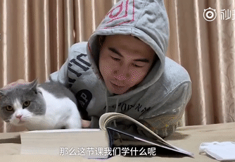 这位网友表示,自己因为疫情没能回去老家,就不能出门,只能看书了。而每次看书的时候,猫就会凑过来观望。