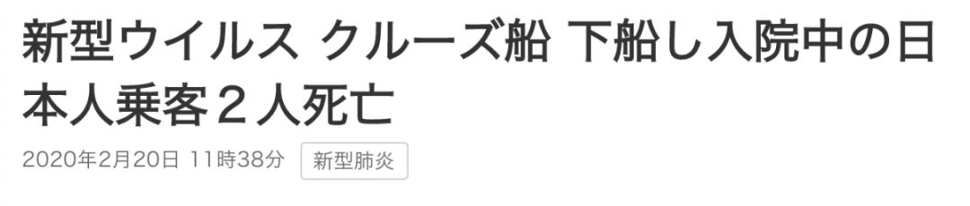 参考资料: https://www3.nhk.or.jp/news/html/20200220/k10012293421000.html https://www3.nhk.or.jp/news/word/0000967.html?word_result=%E6%96%B0%E5%9E%8B%E8%82%BA%E7%82%8E&utm_int=all_header_tag_001 https://www.youtube.com/watch?v=mKIVefEqGEk https://www.asahi.com/articles/ASN2L3QJMN2LUEHF002.html