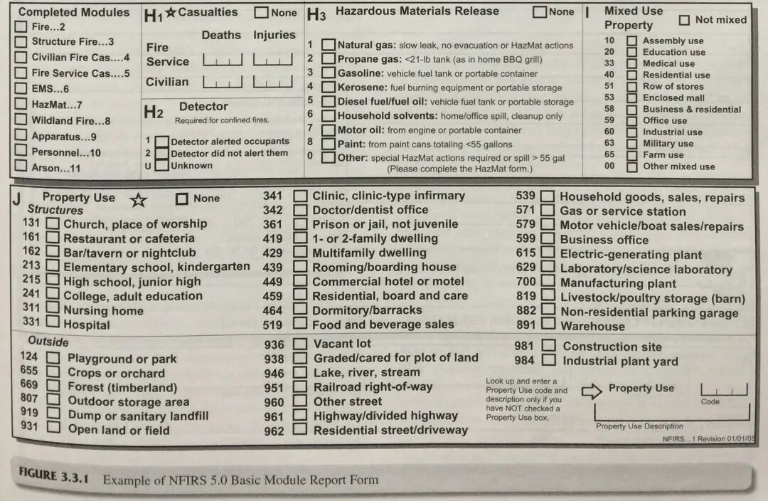 NFIRS从创建起就采用基于计算机的标准化编码版式输入火灾报告。