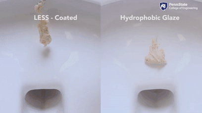 这种神奇效果,来自科学家给马桶增加的一种光滑的涂层喷料——LESS涂层。