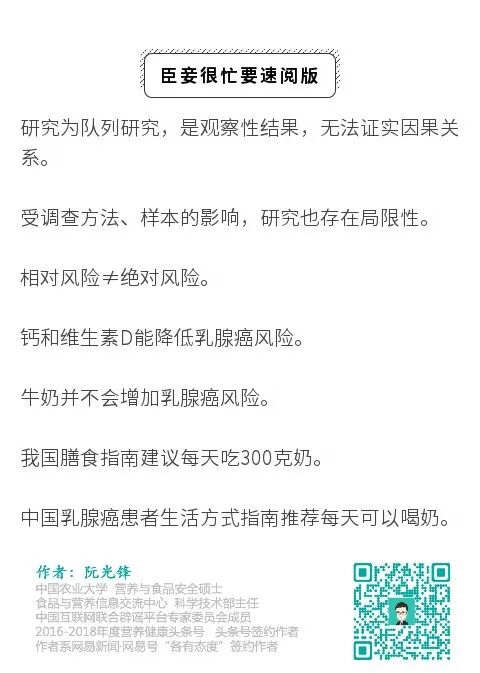 这个研究是一个队列研究,这种研究是一个观察性研究,研究得出的结果是相关性,并不等于因果性,也就说,并不能得出【奶是致癌因素】这个结论。